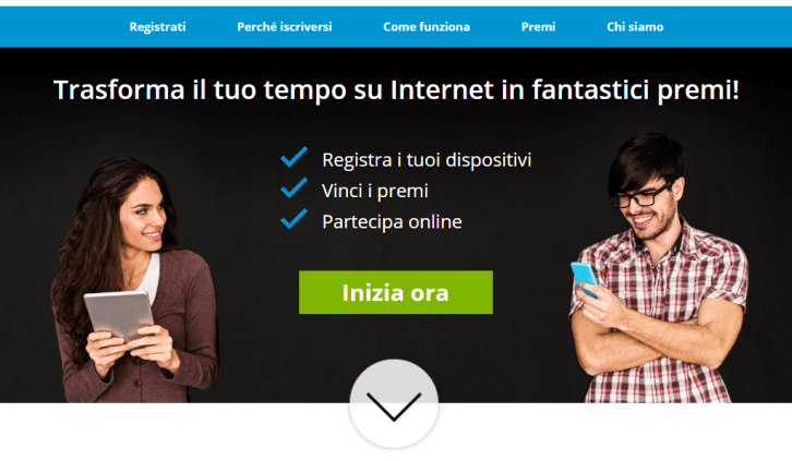 - Come funziona: devi scaricare un app su un tuo dispositivo (PC, smartphone o tablet). Da quel momento in poi, ottieni punti tutte le volte che navighi sul web (indipendentemente dai siti che visiti). Tali punti, al raggiungimento di determinate soglie, sono convertibili in premi o buoni acquisto.